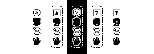 The outer shape shows the impulse, the inner arrowhead gives source and gravity.